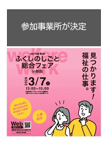 【3/7(土)開催!】ふくしのしごと総合フェアin秋田の参加者募集中!
